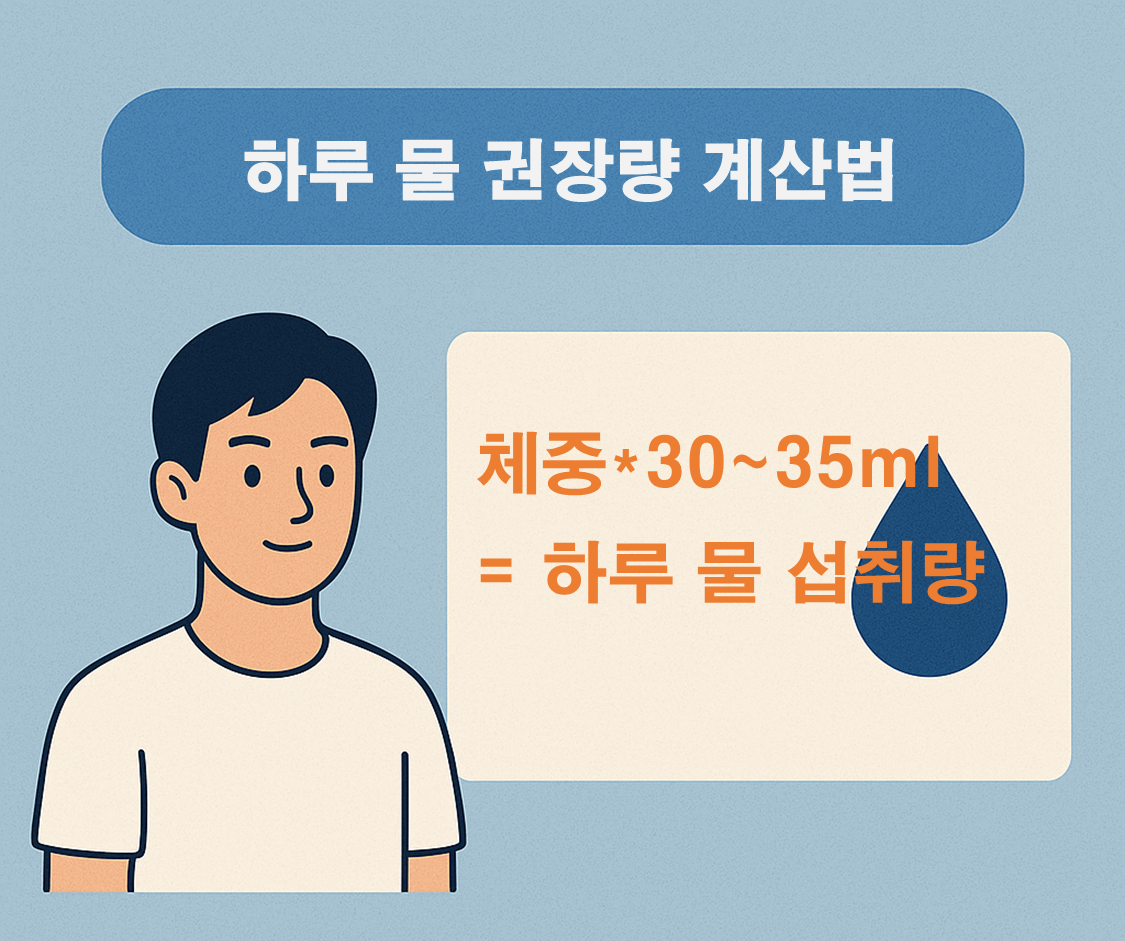 ▶ 체중(kg) × 30~35ml = 하루 권장 수분 섭취량