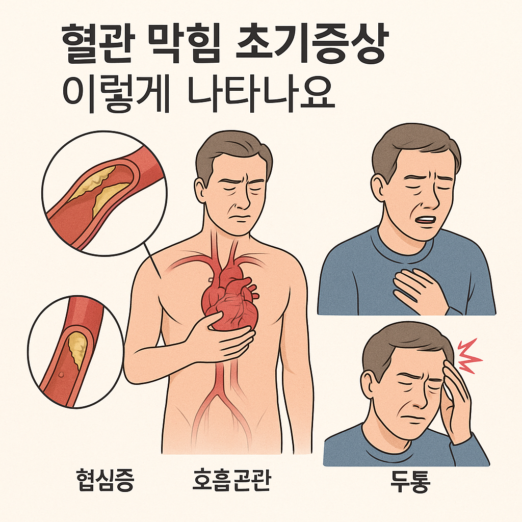 문제는 혈관 막힘이 갑자기 발생하는 것이 아니라 오랜 시간에 걸쳐 서서히 진행된다는 점입니다. 초기에는 증상이 애매하거나 다른 질환으로 오해하기 쉬워서 많은 분들이 놓치고 지나갑니다. 하지만 우리 몸은 놀랍게도 위험 신호를 보냅니다. 협심증, 호흡곤란, 두통 등 다양한 형태로 경고를 하는데, 이 신호를 제때 알아차리면 큰 병을 예방할 수 있습니다.